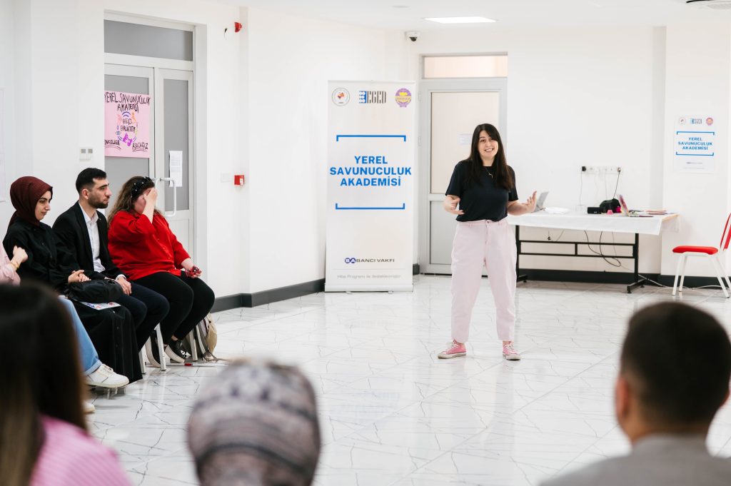 Grup çalışmaları, role-playing etkinlikleri, simülasyonlar ve sunumlarla; yerel düzeyde savunuculuk becerilerimizi geliştirdik, birlikte düşündük, birlikte ürettik.