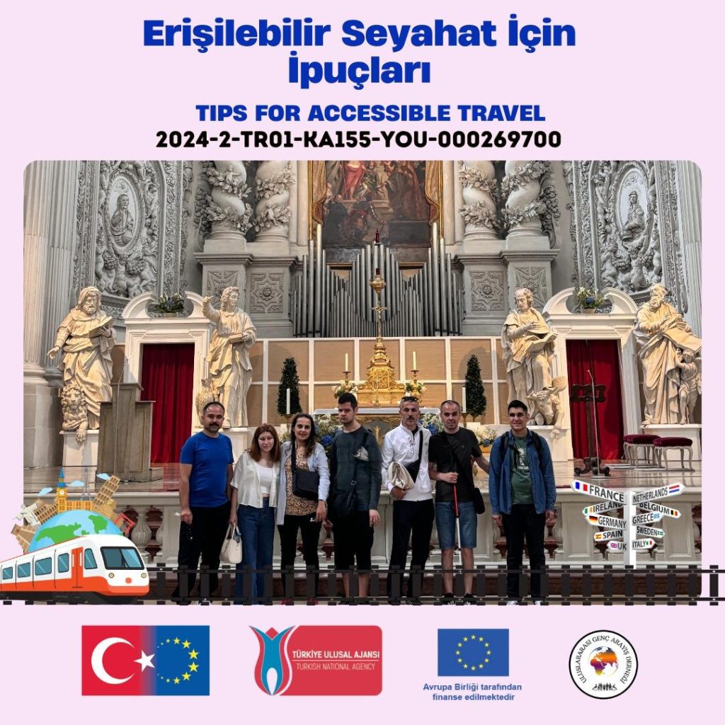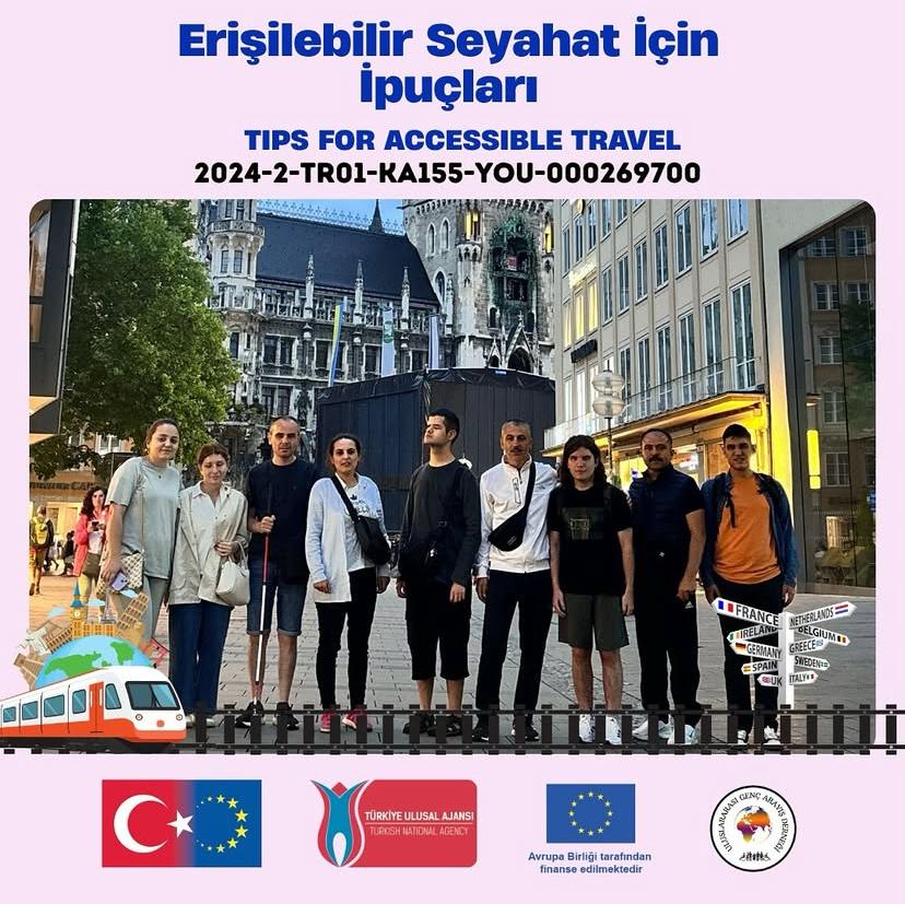 Uluslararası Genç Arayış Derneği’nin başvuru sahibi olduğu ve Türkiye Ulusal Ajansı tarafından Erasmus+ Programı kapsamında desteklenen 2024-2-TR01-KA155-YOU-000269700 numaralı “Erişilebilir Seyahat İçin İpuçları” projesi kapsamında katılımcılar; Almanya’nın Münih, İsviçre’nin Zürih, İtalya’nın Milano, Floransa ve Roma şehirlerini ziyaret ederek bu şehirlerdeki erişilebilirlik durumunu yerinde gözlemledi.